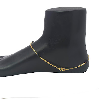 Gold Plated Black Crystal Designer Chain Anklets Payal |Kollam Supreme: Gold Plated Black Crystal Designer Chain Anklets Payal for women. Beautiful designer more attractive Gold plated pair of Fashion Anklets with black crystal beads that add more beauty to your ankles. Match them with your traditional or modern outfit to complete your look